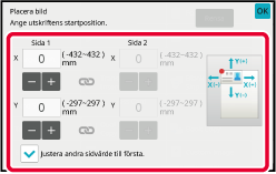 Tryck på området som indikerar flyttningsavståndet på fram- och baksidan och ange avståndet med sifferknapparna.Lägg i originalet.
