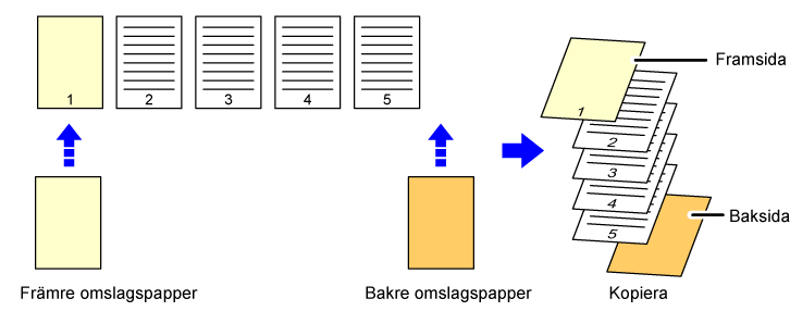 ![]() Infogar omslagsark i före eller efter kopiorna. |
