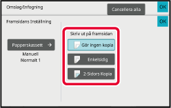Tryck på [OK] och [Föregående] efter varandra när du är klar med inställningarna.Tryck på någon av knapparna [Färg Start] eller [SV/V Start] för att börja kopiera.