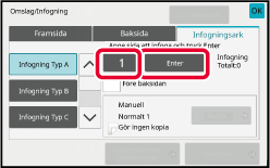 De totala antalet infogningsark visas bredvid knappen [Enter]. Upprepa dessa steg för antalet infogningsark.Tryck på [Ändra].