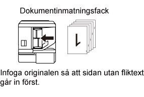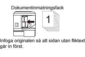 Om du använder handinmatningsfacket ska du placera papperet med textsidan nedåt.Lägg i originalet och tryck på knappen [Förhandsgr.].