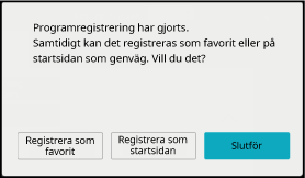 Ett meddelande om genomförd registrering visas.Ange om programmet ska läggas till på hemskärmen eller i favoriter.