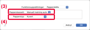 eller [Aktivera vald pappersstorlek i handinmatningsfacket] (aktiverad som fabriksstandard),