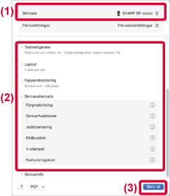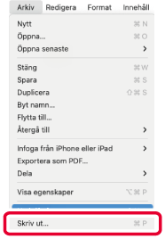 Välj [Utskriftsformat] i menyn [Arkiv] och välj skrivare.