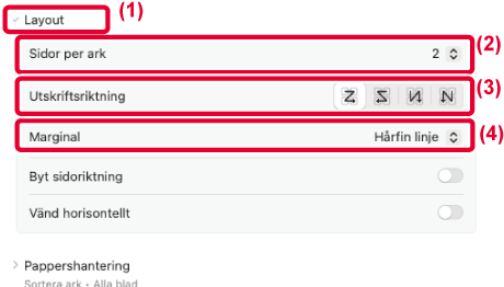 Om du t.ex. väljer [2-upp] (2 sidor per ark) eller [4-upp]