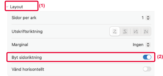 180 grader så att den kan skrivas ut i rätt riktning på papper som