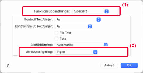 Du kan göra kanterna på text och grafik jämnare eller skarpare. Auto: Utför optimal bildförbättring. Av: Ingen bildförbättring tillämpas. Skarp: Skarp bildförbättring tillämpas. Mjuk: Jämn bildförbättring tillämpas. |