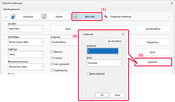 Du kan även skriva ut alla linjer med den minsta linjebredden