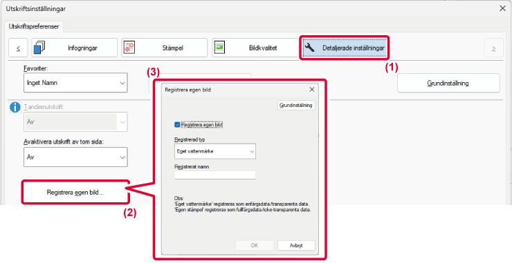 Om [Egen stämpel] har valts i "Registrerad typ" registreras