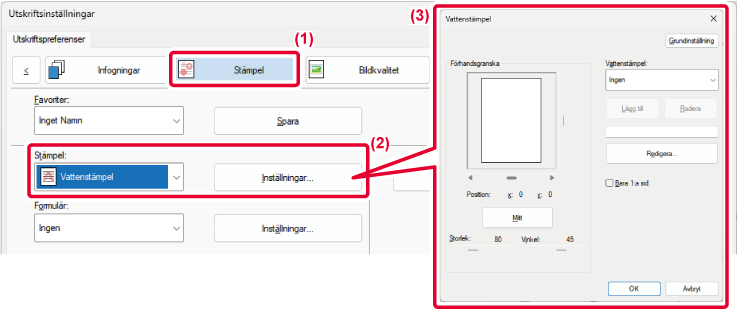 - Välj [Vattenstämplar] i ”Skrivaralternativ”.