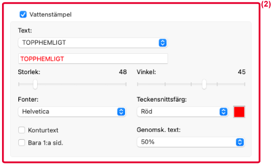- Markera kryssrutan [Vattenstämpel] och konfigurera inställningarna