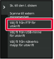 Tryck på [Välj fil från FTP för utskrift] på manöverpanelen.