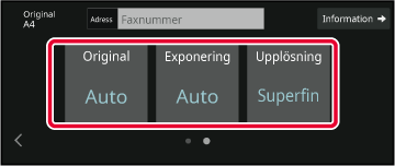 Ange originalets scanningsstorlek, exponering, upplösning, etc.Sänd originalet.