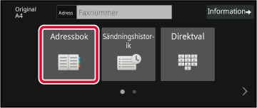 Tryck på knappen [Direktval] eller på [Faxnummer] för att mata in destinationens faxnummer.