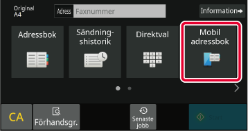 I Enkelt lägeGå till grundskärmen eller adressboksskärmen och tryck på [Se mobil adressbok] i åtgärdspanelen.