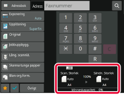 Om inställningen inte stämmer kommer bilden eventuellt inte att sändas på rätt sätt. När inställningarna är klara trycker du påStorleken identifieras automatiskt när originalet