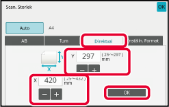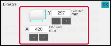 Tryck på knappen [Direktval] och ange scanningstorleken.