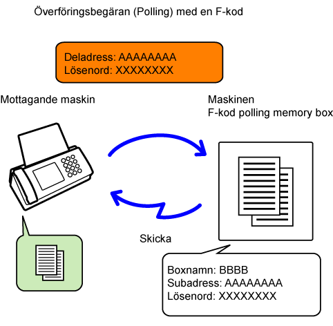 en faxminnesbox för F-kod (pollingminne) på din maskin till den