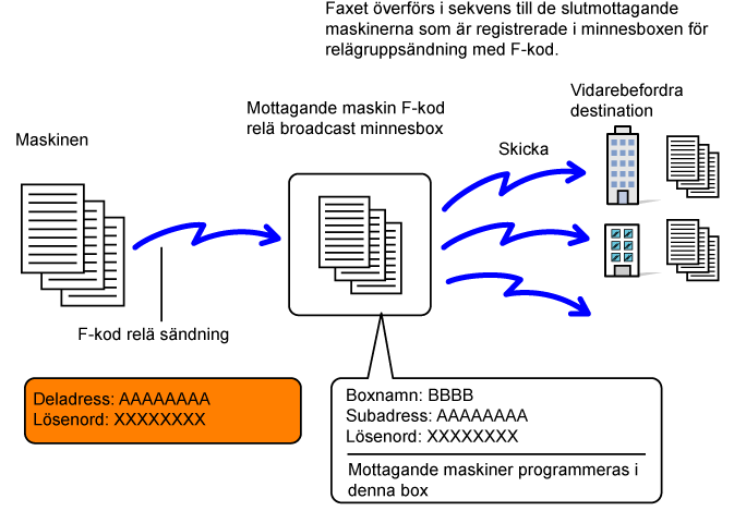 och sedan låta denna maskin vidarebefordra faxet till flera destinationsmaskiner.