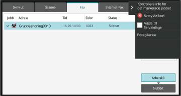 lista. Bekräfta faxjobbets status genom att trycka på visningsläget och