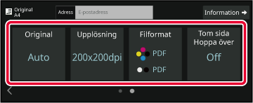 Ange originalets scanningsstorlek, exponering, filformat och andra inställningar.Sänd originalet.