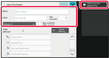 Skriv grundläggande information och tryck på [Växla till gruppregistrering] på åtgärdspanelen.