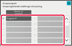 Placera originalet i dokumentinmatningsfacket i den automatiska dokumentmataren eller på dokumentglaset i enlighet med funktionen som sparats i programmet.Tryck på knappen för önskat program.
