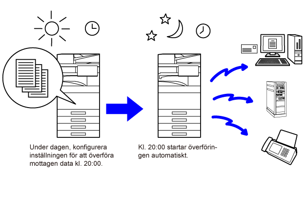 eller gruppsändning. Överföringen påbörjas automatiskt vid den angivna tidpunkten.