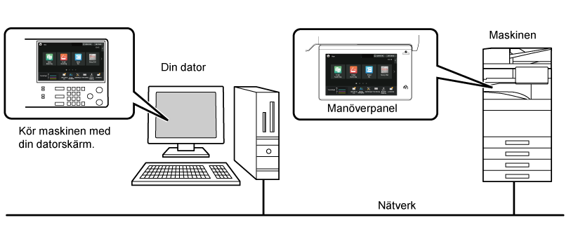 maskinens pekpanel när maskinen är ansluten till VNC-programvara.