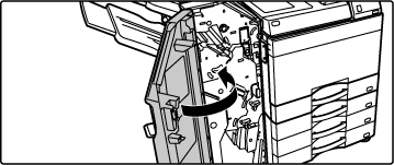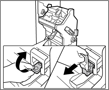 Durana kadar yavaşça dışarı çekin.Zımba kutusu açma kolunu indirin ve zımba kutusunu çıkarın.