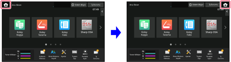 Ayarlar makineye kaydedilir ve uygulanır.[Ana Ekran] tuşunun konumunu değiştirebilirsiniz.