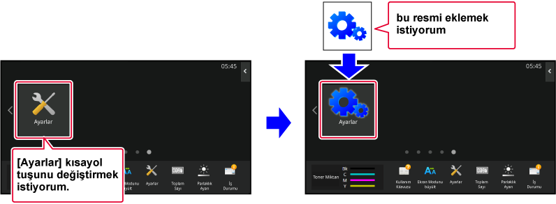 Kısayol tuşu dokunulan konuma taşınır.Ayarları tamamladıktan sonra, [Oturumdan çıkma] tuşuna dokunun.