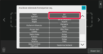 Bazı ayarlar için [Ana Ekran Ayarı] bölümünü tıkladıktan sonra kullanıcı parolanızı girmeniz gerekebilir. Kullanıcı kimlik doğrulaması yapmadıysanız, yönetici parolasını girmelisiniz.Eklemek istediğiniz işlevi seçin.