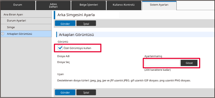 Ayarları yapılandırmayı tamamladığınızda, [Gönder] düğmesini tıklayın.