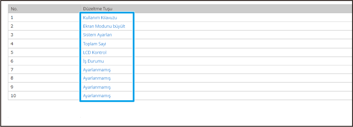 Yeni bir sabit tuş eklemek için [Ayarlanmamış] öğesini tıklayabilirsiniz.Eklemek istediğiniz işlevi seçin ve [Gönder] düğmesini tıklayın.