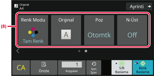 - Fotokopi modunda kullanılabilen işlevleri görüntüler.