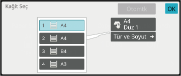 boyutunu değiştirmek isterseniz, kağıt tablasını manüel olarak seçebilirsiniz.