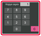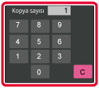 Orijinali otomatik belge besleyicinin belge besleyici tablasına veya belge camına yerleştirin.Sayı tuşlarını kullanarak kopya sayısını (takım sayısı) seçin.