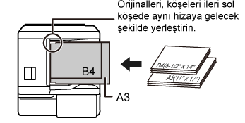 B4 (8-1/2" x 14") boyutlu orijinalleri A3 (11" x 17") boyutlu orijinallerle