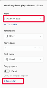 Yazdırma işlemi başlar.Yazıcı sürücüsü ayarları