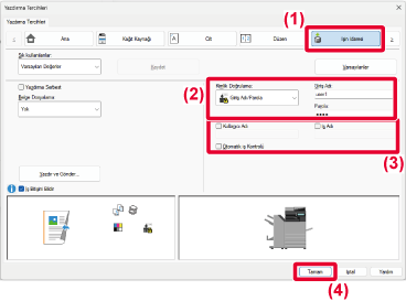 KULLANICI KİMLİK DOĞRULAMA İŞLEVİ DEVREDEYKEN YAZDIRMA