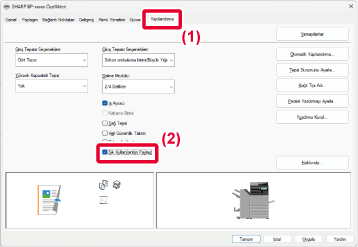 Ayar açıklamaları için yazıcı sürücüsü Yardım bölümünü inceleyin.Bu makineyi paylaşılan bir yazıcı olarak