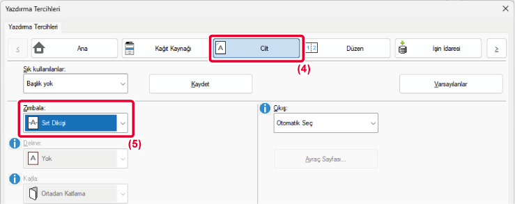 - "Printer Options" bölümünden [Printer Features]