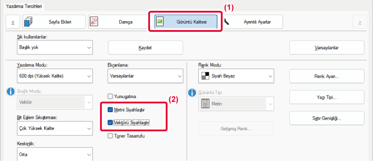 Siyah veri alanının sadece siyah toner kullanılarak yazdırılıp yazdırılmayacağını seçin. |