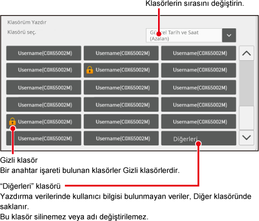 Kullanıcılar, makine üzerinde kendi klasörlerinden yazdırma
