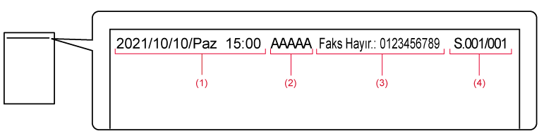 saat, gönderici adı, gönderici faks numarası ya da hedef adı ve