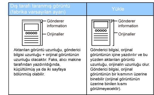 → [Faks Ayarlari] → [Gönder Ayarları] → [Alıcıda sayfa numarasının yazdırılması] seçimlerini