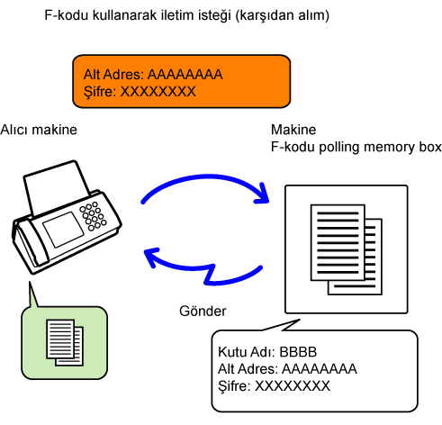 makine) kayıtlı F-kodu bellek kutusuna (gizli) faks göndererek,