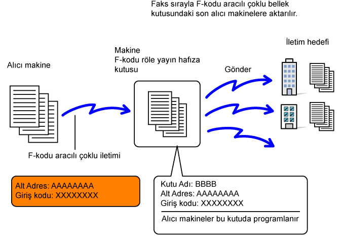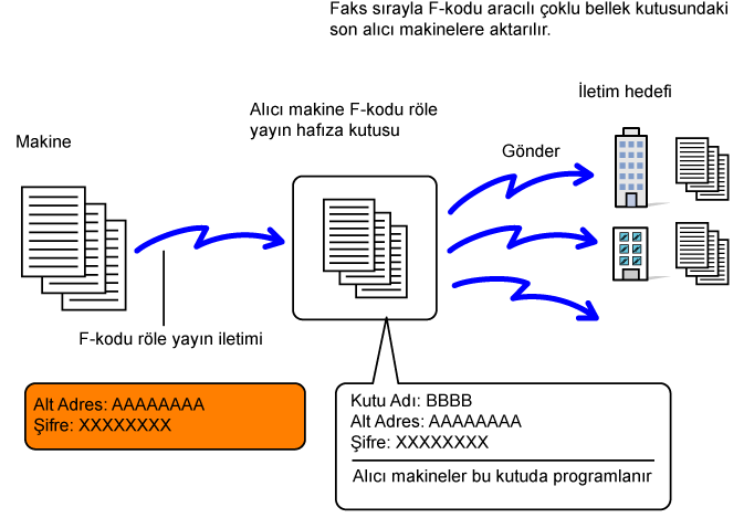 aracılı çoklu bellek kutusuna faks gönderilir ve bu makinenin faksı