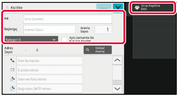 Temel bilgileri girin ve işlem panelindeki [Grup Kaydına Dön] tuşuna dokunun.